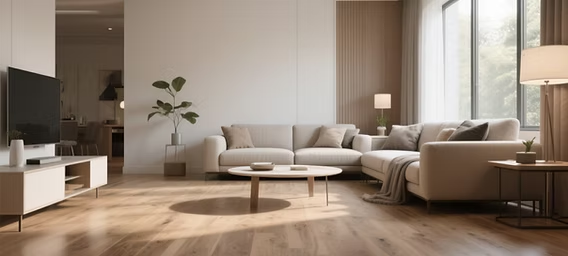Warna Netral: Hindari warna kayu yang terlalu merah atau terlalu kuning. Pilihlah warna Beige, Greige (Grey-Beige), atau Light Ash.